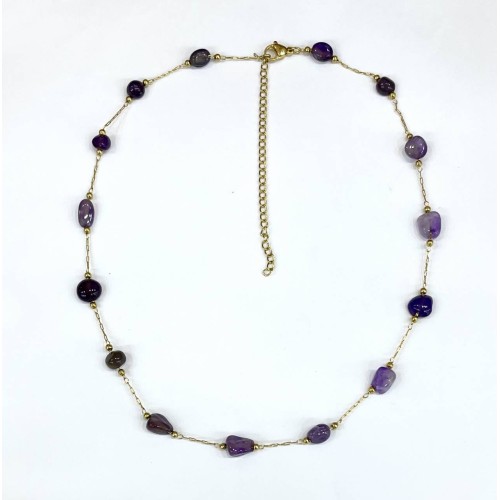 Κολιέ Ατσάλι Ατσάλι Διάφορες πέτρες με μωβ πέτρες MHK:40+7cm ΧΡΩΜΑ:18k gold ΧΡΩΜΑ2:Μωβ..