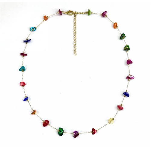 Κολιέ Ατσάλι Ατσάλι Διάφορες πέτρες με πολύχρωμες πέτρες ΜΗΚ:40+7cm ΧΡΩΜΑ:18k gold..