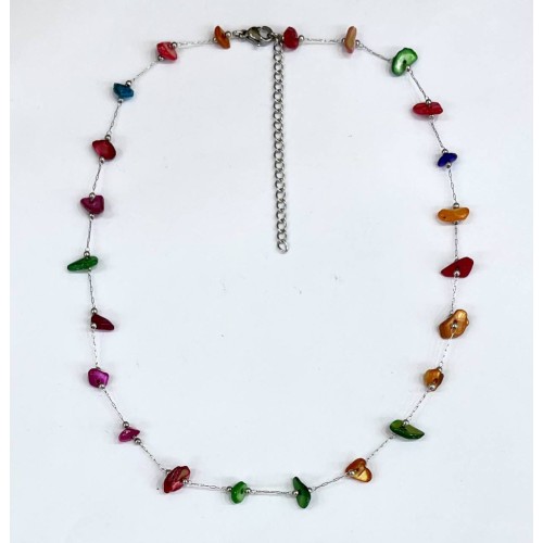 Κολιέ Ατσάλι Ατσάλι Διάφορες πέτρες με πολύχρωμες πέτρες ΜΗΚ:40+7cm ΧΡΩΜΑ:Steel colour..