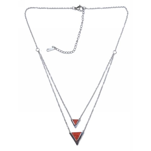 Kostibas 1013-794A2, Κολιέ, Ατσάλι, Με διπλό μοτίφ τριγωνικό, Ασημί