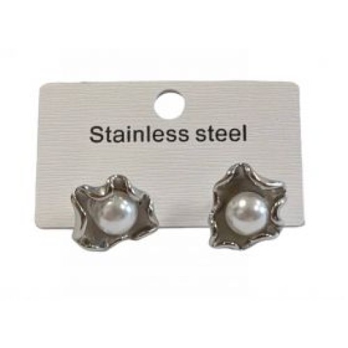 Kostibas 3113-954AP, Σκουλαρίκια Καρφωτά, Ατσάλι, Ασημί/Λευκό