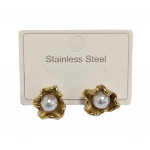 Kostibas 3113-954XP, Σκουλαρίκια Καρφωτά, Ατσάλι, Χρυσό/Λευκό