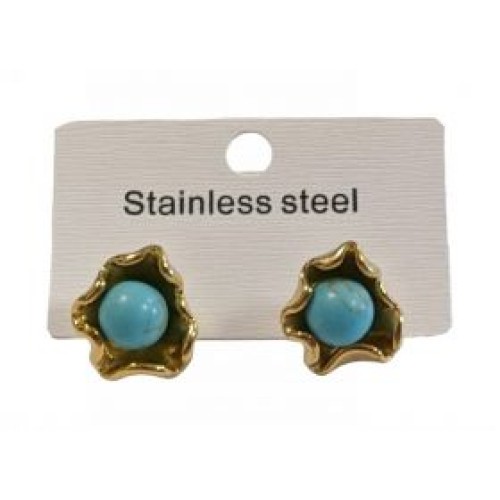 Kostibas 3113-954XT, Σκουλαρίκια Καρφωτά, Ατσάλι, Χρυσό/Τιρκουάζ