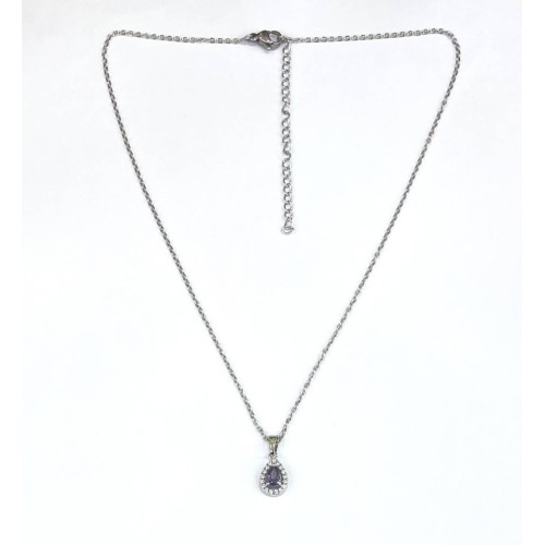 Kostibas 1013-981AJ, Κολιέ, Ατσάλι, Λευκό με μωβ δάκρυ
