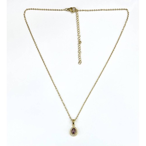 Kostibas 1013-981XJ, Κολιέ, Ατσάλι, Χρυσό με μωβ δάκρυ