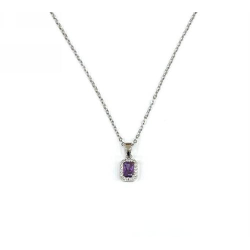 Kostibas 1013-982AJ, Κολιέ, Ατσάλι, Λευκό με μωβ πέτρα