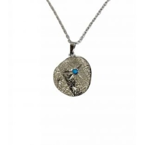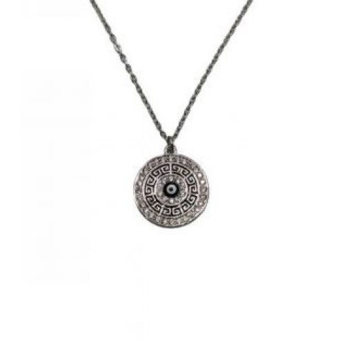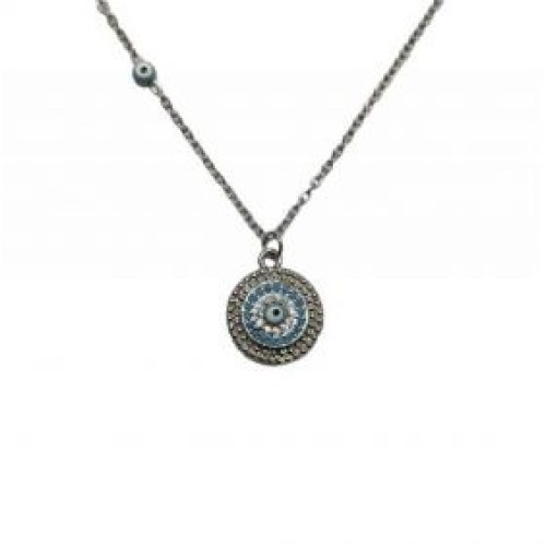 Κολιέ από Ατσάλι με ματάκι σε στρογγυλό ατσάλινο μοτίφ Διαστάσεις: 38+5cm Χρώμα: Ασημί..