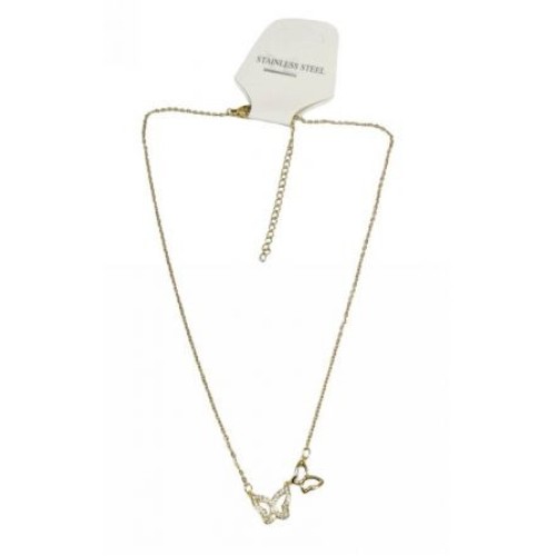 Κολιέ από ατσάλι με μοτίφ ατσάλινο πεταλούδα Διαστάσεις: 35+7cm Χρώμα: 18k gold..
