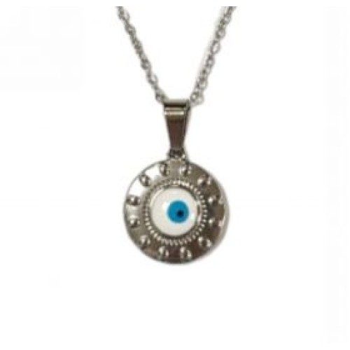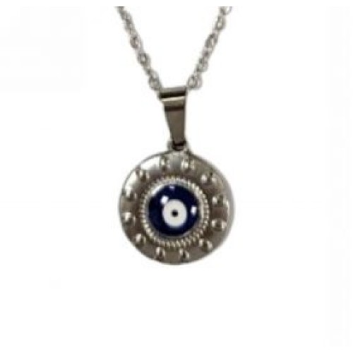 Κολιέ από ατσάλι με μοτίφ στρόγγυλο με μάτι Χρώμα βασικό: Ασημί Χρώμα από ματάκι: Μπλε ..
