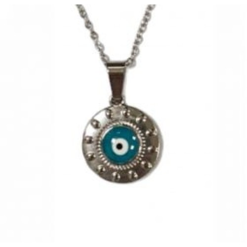 Κολιέ από ατσάλι με μοτίφ στρόγγυλο με μάτι Χρώμα βασικό: Ασημί Χρώμα από ματάκι: Τυρκουάζ ..