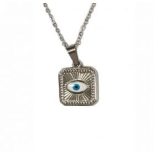 Κολιέ από ατσάλι με μοτίφ τετράγωνο με μάτι Χρώμα βασικό: Ασημί Χρώμα από ματάκι: Λευκό ..