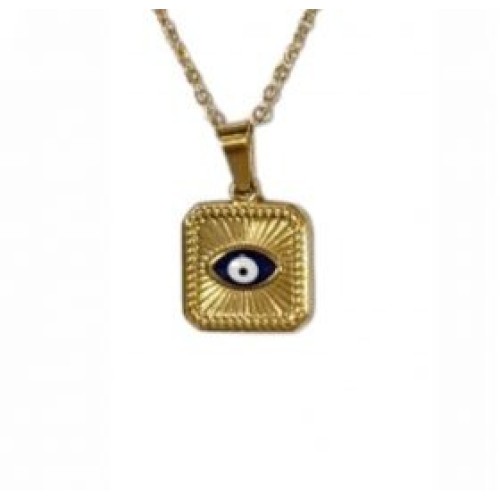 Κολιέ από ατσάλι με μοτίφ τετράγωνο με μάτι Χρώμα βασικό: Χρυσό Χρώμα από ματάκι: Μπλε..