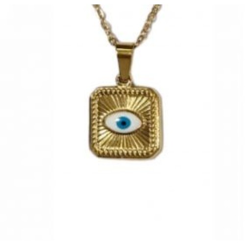 Κολιέ από ατσάλι με μοτίφ τετράγωνο με μάτι Χρώμα βασικό: Χρυσό Χρώμα από ματάκι: Λευκό..
