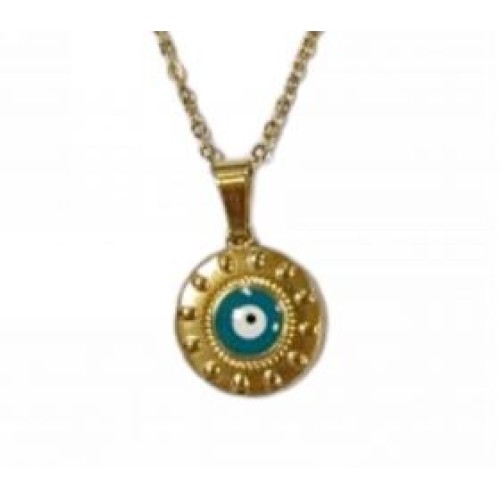 Κολιέ από ατσάλι με μοτίφ στρόγγυλο με μάτι Χρώμα βασικό: Χρυσό Χρώμα από ματάκι: Τυρκουάζ..
