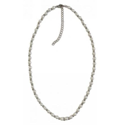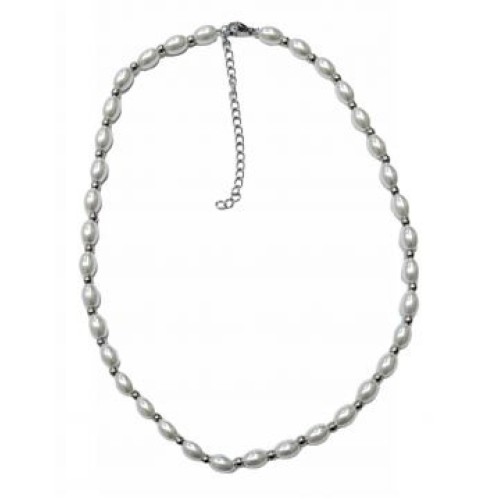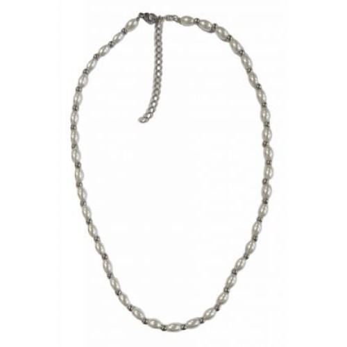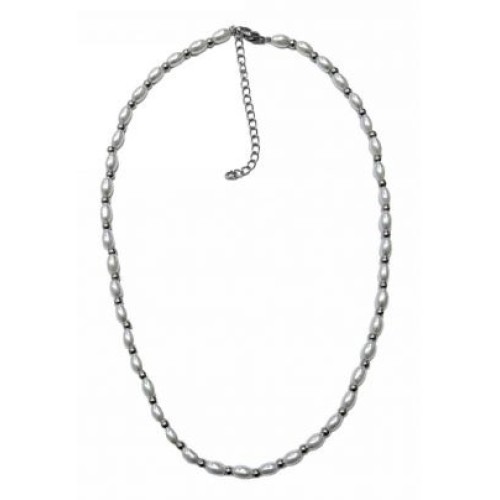 Κολιέ από ατσάλι με πέρλα σε μέγεθος 4 x 6mm Διαστάσεις : 38cm (+7) Χρώμα: Ασημί..