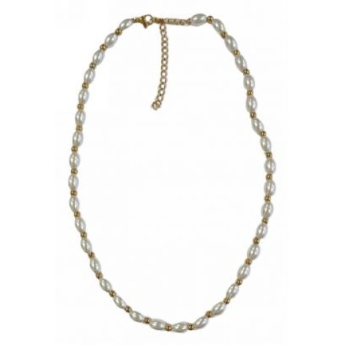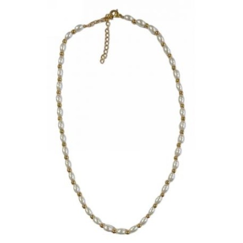 Κολιέ από ατσάλι με πέρλα σε μέγεθος 5 x 7mm Διαστάσεις : 38cm (+7) Χρώμα: Χρυσό..