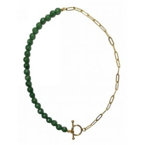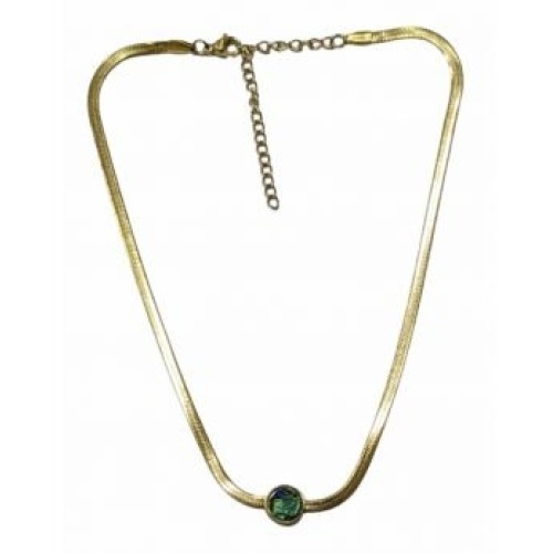 Κολιέ από ατσάλι με πολυγωνική πέτρα σε πράσινο χρώμα..