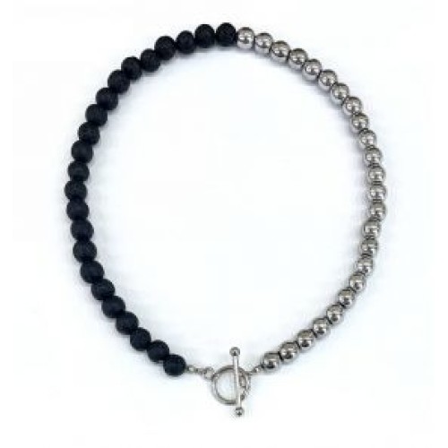 Κολιέ ,με ιδιαίτερο κούμπωμα πέτρα λάβα #8 και αιματίτη #8..