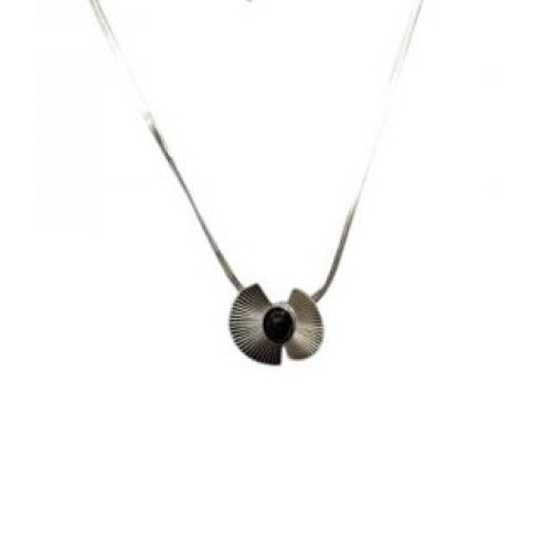 Κολιέ από ατσάλι, με μοτίφ πέτρα λάβα..