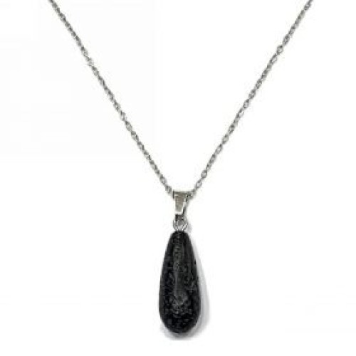 Κολιέ από ατσάλι, με μοτίφ πέτρα λάβα σε σχήμα δάκρυ ..
