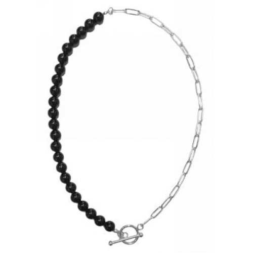 Κολιέ από ατσάλι με αλυσίδα με μπίλια Διαστάσεις: 48+7cm..