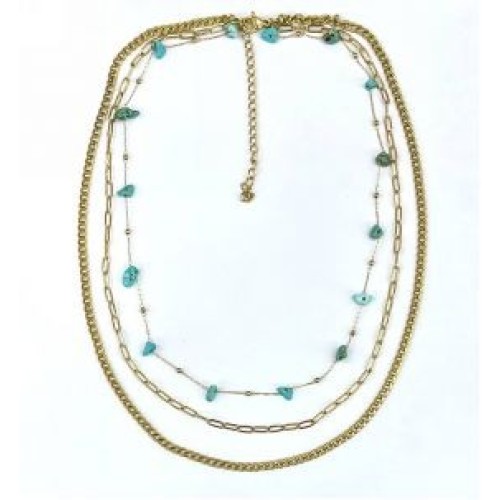 Kostibas 1013-890XT, Κολιέ, Ατσάλι, Μοτίφ, Χρυσό/Τιρκουάζ