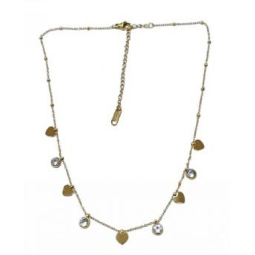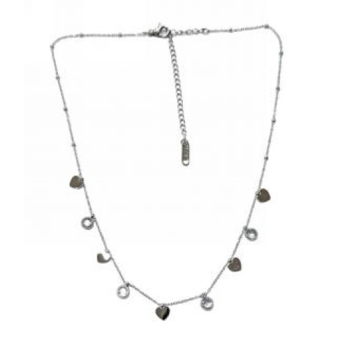 Κολιέ από ατσάλι με μοτίφ στρόγγυλα & ατσάλινες καρδούλες Διαστάσεις: 38+7cm..