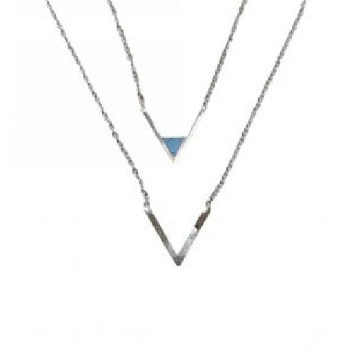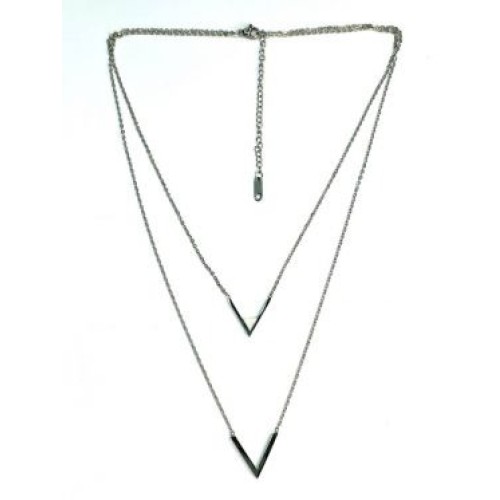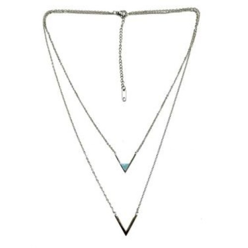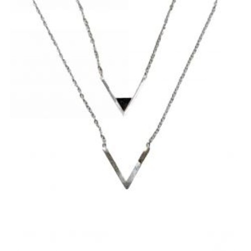 Κολιέ από Ατσάλι με μοτίφ διπλό τρίγωνο ασημί Διαστάσεις: 50(+7)cm..