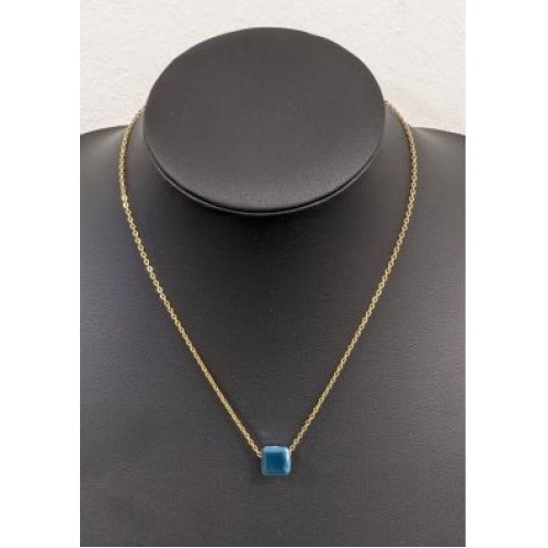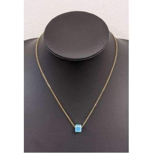 Κολιέ από ατσάλι με μοτίφ copper γυαλί και πολυγωνική πέτρα 6#..