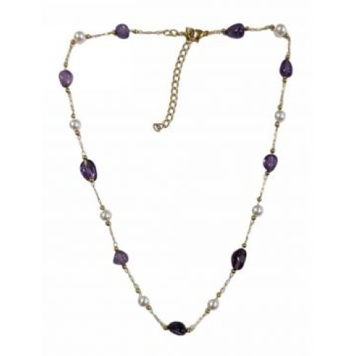 Kostibas 1013-766XJ, Κολιέ, Πέτρα/Πέρλα, Χρυσό/Αμέθυστος