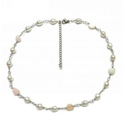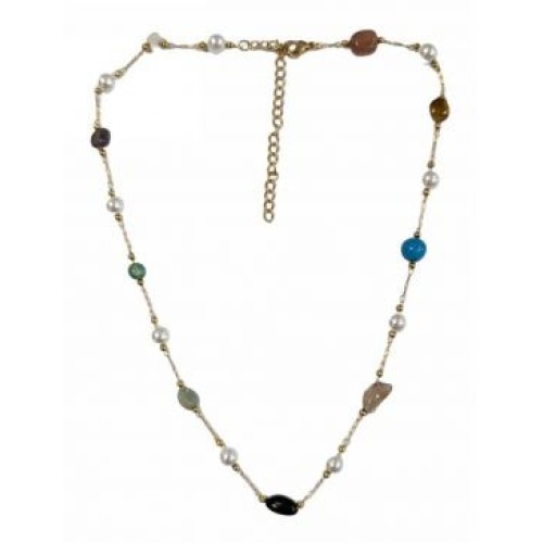 Κολιέ με πολύχρωμες πέτρες και πέρλα Διαστάσεις: 39(+7) cm..