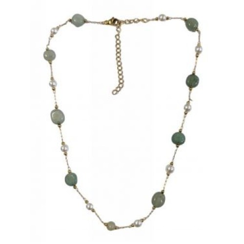 Κολιέ με πολύχρωμες πέτρες και πέρλα (αβεντουρίνη #8 και πέρλα #6) Διαστάσεις: 39(+7) cm..