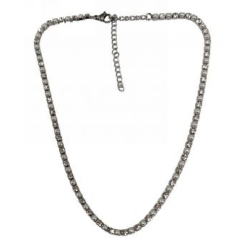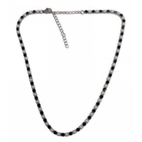Kostibas 1013-642AM, Κολιέ, Ατσάλι, Στρας, Ασημί/Μαύρο