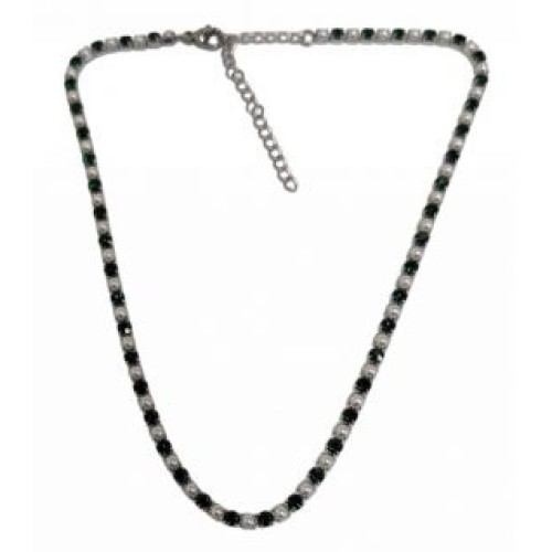 Kostibas 1013-642AP, Κολιέ, Ατσάλι, Στρας, Ασημί/Πράσινο