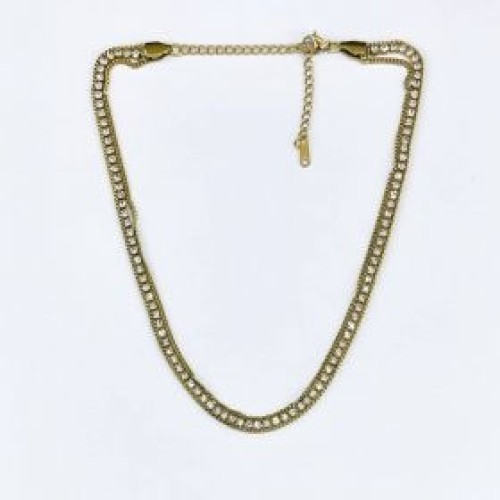 Kostibas 1013-624X, Κολιέ, Choker, Ατσάλι, Στρας, Χρυσό