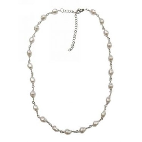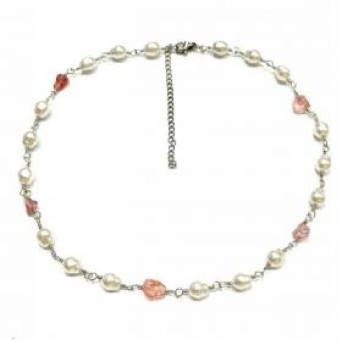 Κολιέ από ατσάλι με στρας και πέρλα Διαστάσεις: 32 (+7)cm ..