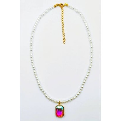 Κολιέ με πέρλα και ορθογώνιο μοτίφ Διαστάσεις: 38 (+7)cm..