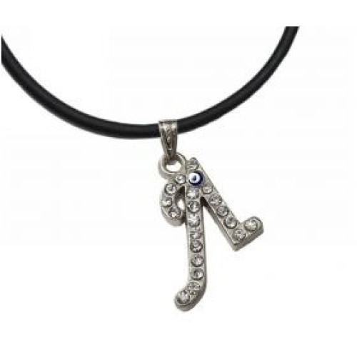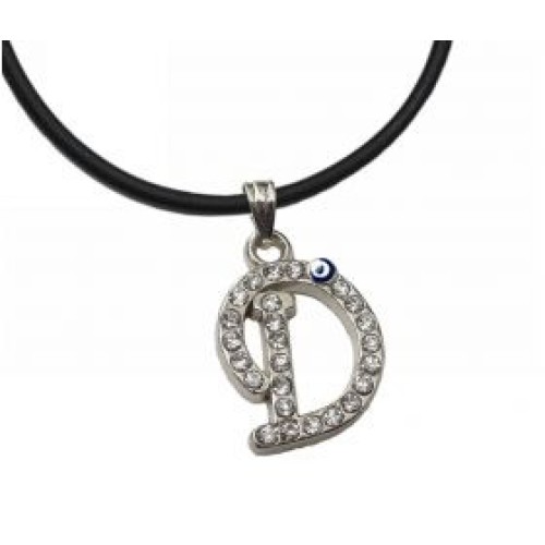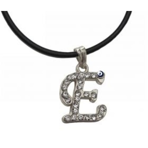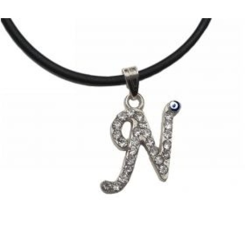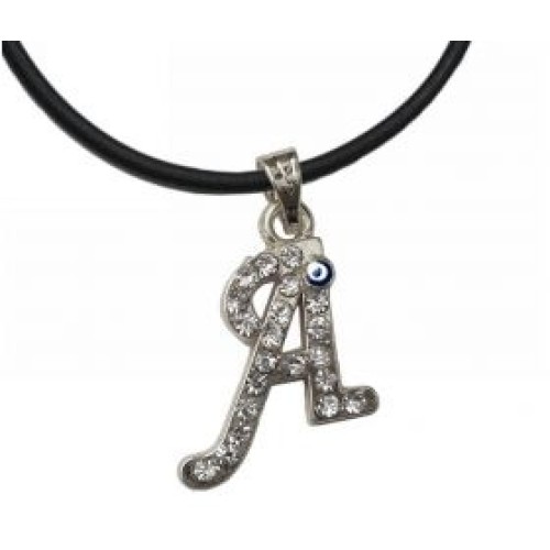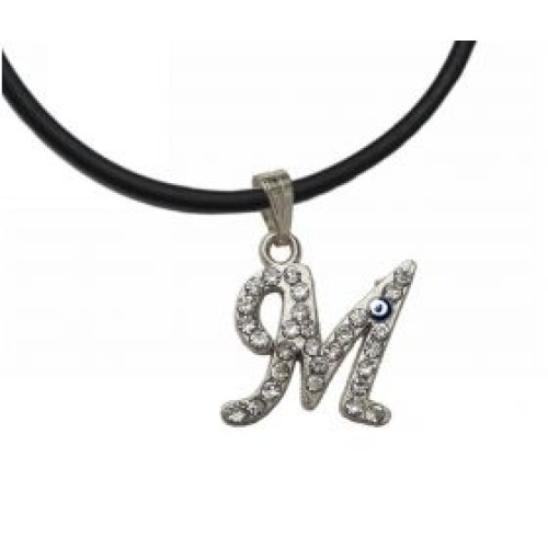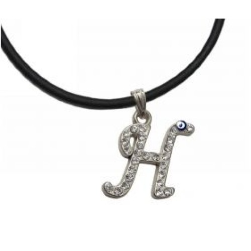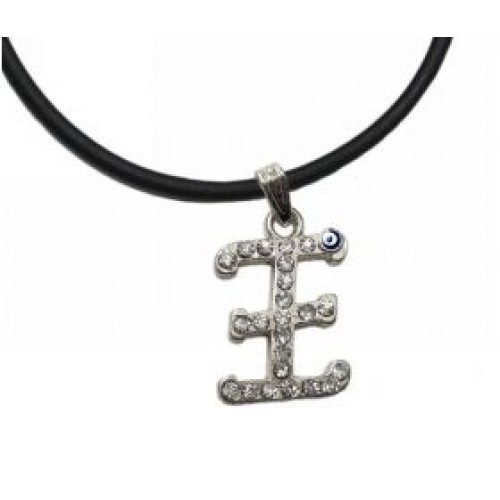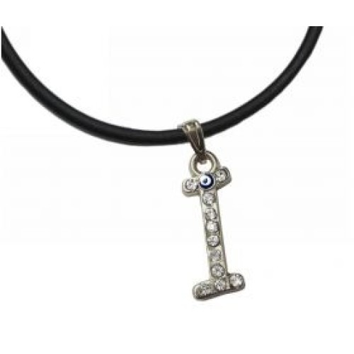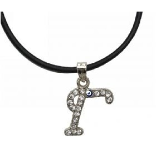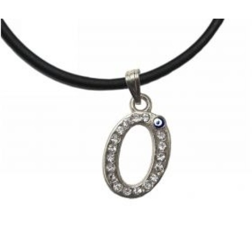 Κολιέ με καουτσούκ και μοτίφ μονόγραμμα με στρας και ματάκι..