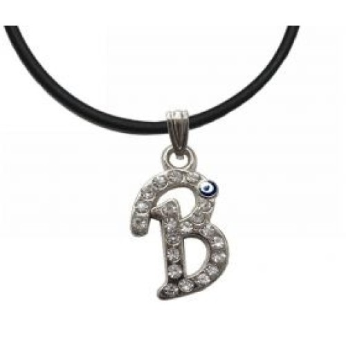Kostibas 1034-501AB, Κολιέ, Καουτσούκ, Μονόγραμμα, Βήτα, Ασημί