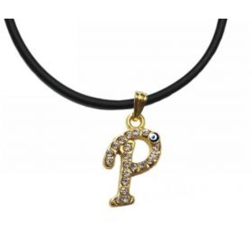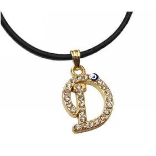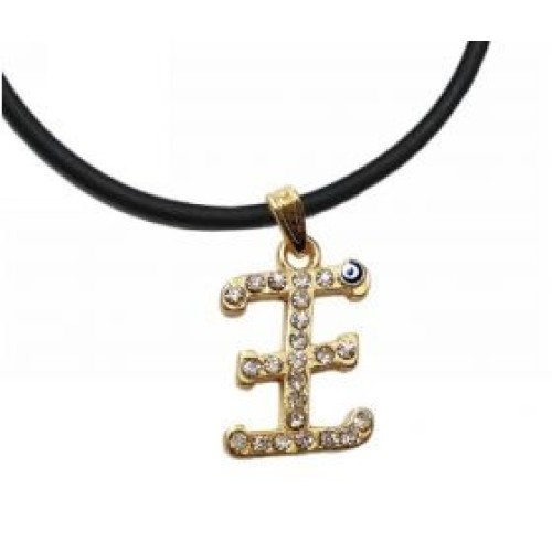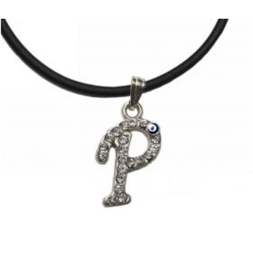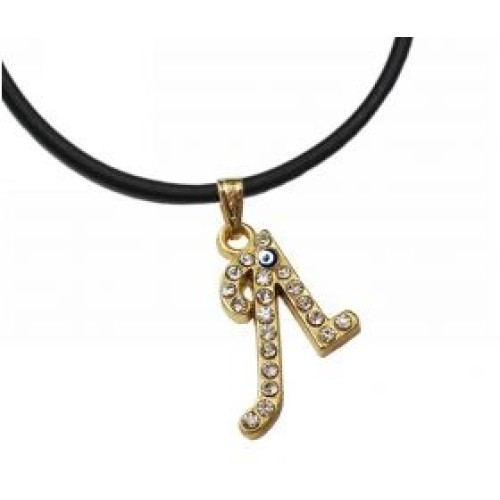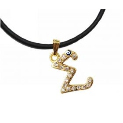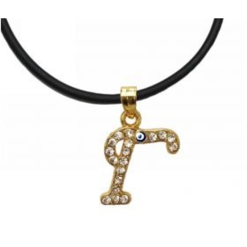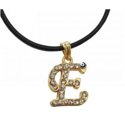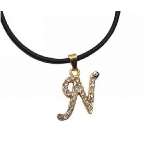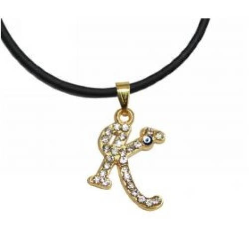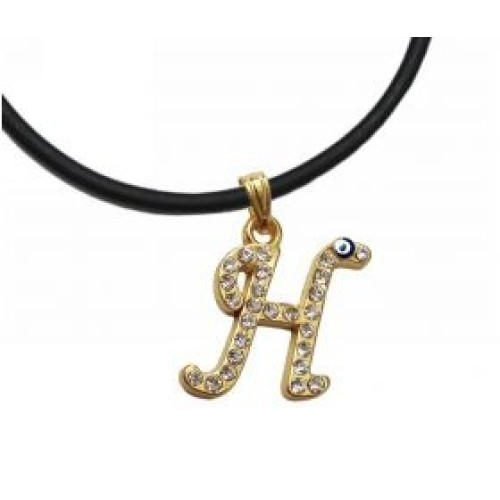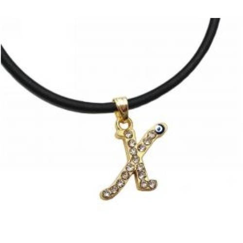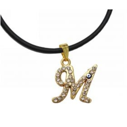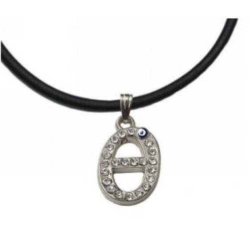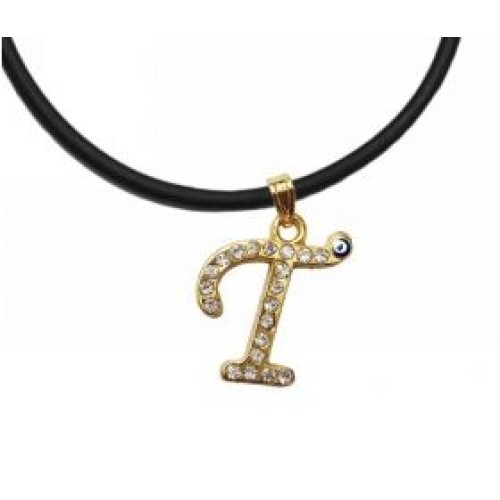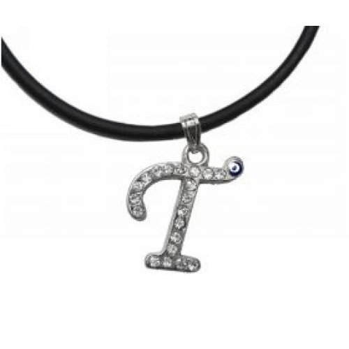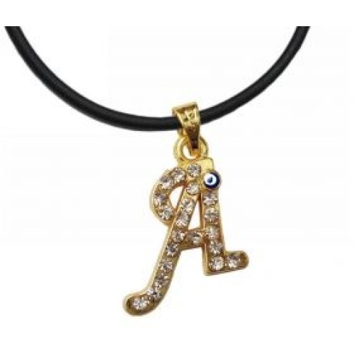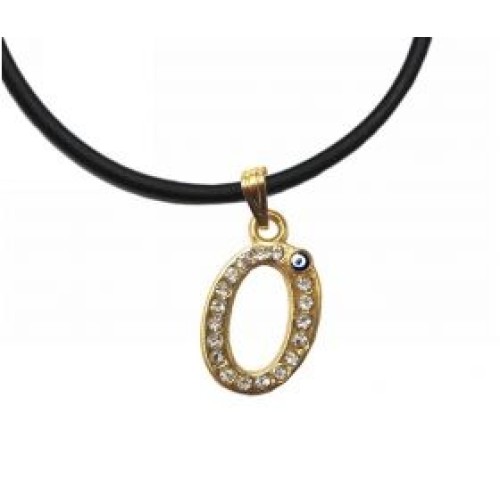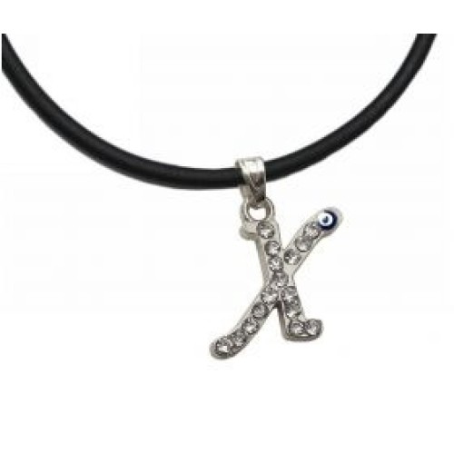 Κολιέ με καουτσούκ και μοτίφ μονόγραμμα με στρας και ματάκι..
