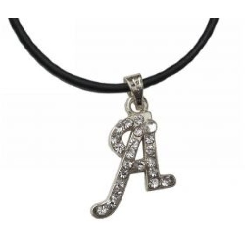 Kostibas 1034-502AA, Κολιέ, Καουτσούκ, Μονόγραμμα, ʼλφα, Ασημί
