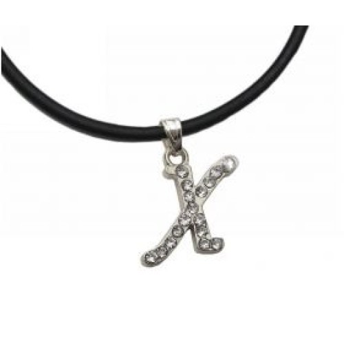Kostibas 1034-502AJ, Κολιέ, Καουτσούκ, Μονόγραμμα, Ξι, Ασημί