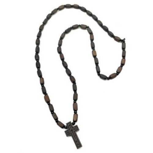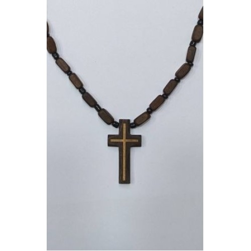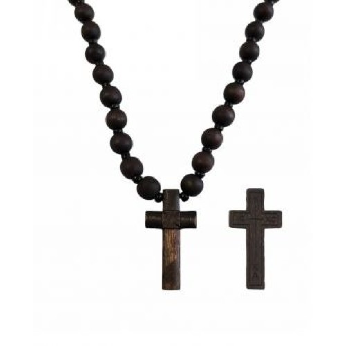 Κολιέ εκκλησιαστικό 12 τεμαχίων με μοτίφ σταυρό ,42 ξύλινους κυλίνδρους και 44 μικρές χάντρες..