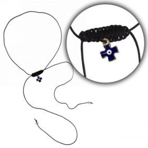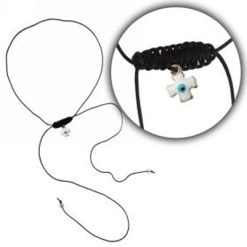 Κολιέ Μακραμέ από σχοινί με μοτίφ μάτι/σταυρό Μήκος: 75cm..
