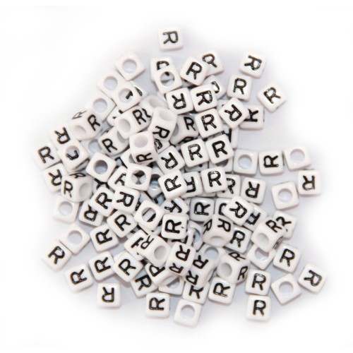 Kostibas 3897-186MR, Χάντρες, Κύβος, Γράμμα R, Ασπρόμαυρο, 630τμχ