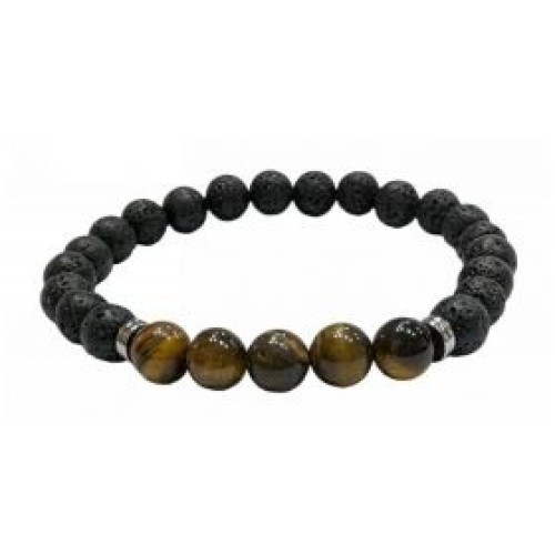 Ανδρικό βραχιόλι με πέτρες λάβα #8, μάτι τίγρη#8 και αιματίτες..