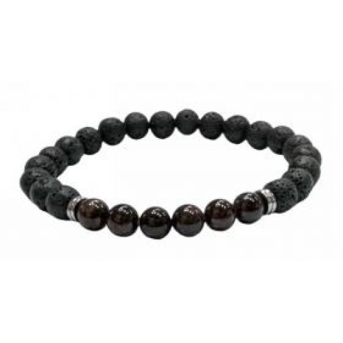 Ανδρικό βραχιόλι με πέτρες λάβα #8, garnet#8 και αιματίτες..
