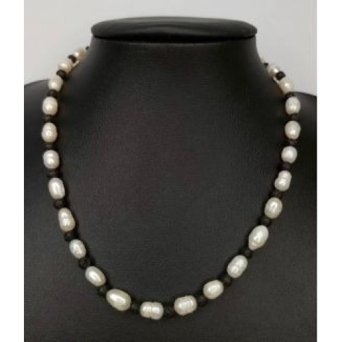 Κολιέ με αλυσίδα από ατσάλι τύπου φακαντόρο 0,8mm με μαργαριτάρια 6-7mm ..