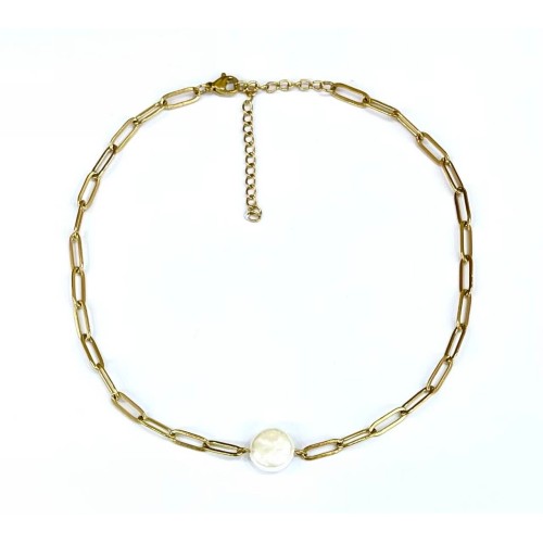 Κολιέ με αλυσίδα από ατσάλι με μαργαριτάρι Μήκος: 32 (+7)cm..