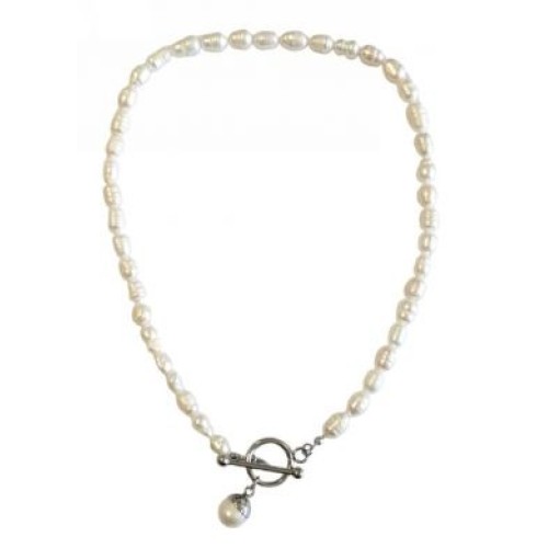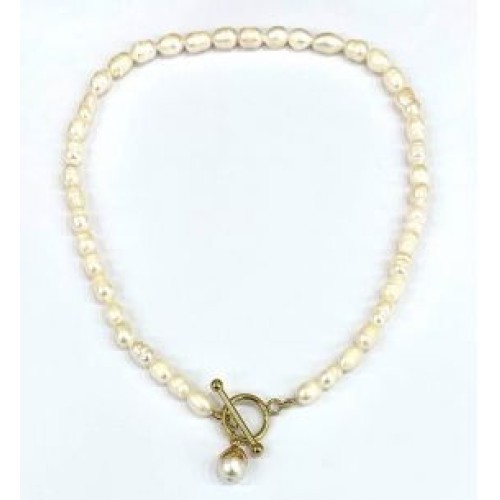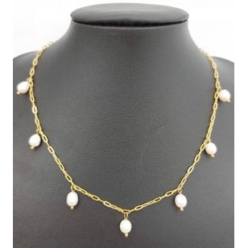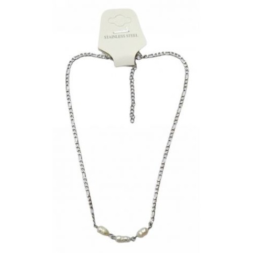 Κολιέ με αλυσίδα από ατσάλι με μαργαριτάρια 4-5mm Μήκος: 38cm..